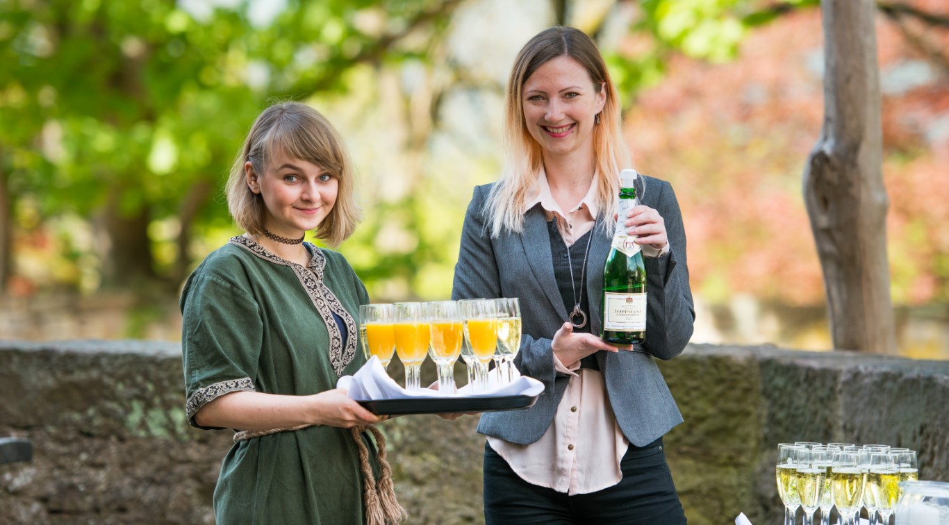 Im malerischen Schlosshof stoßen wir gemeinsam auf die Liebe an. Bei ausgewählten Canapés und prickelndem Sekt genießen wir die ersten Momente als Ehepaar gemeinsam.