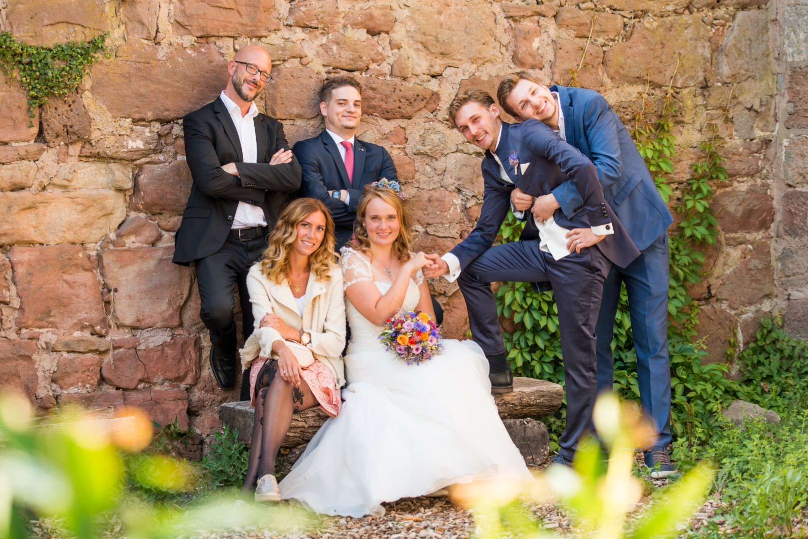 Zunächst halten wir diesen besonderen Tag mit gemeinsamen Familienfotos im Schlosshof fest. Anschließend ziehen wir uns für einige private Hochzeitsfotos zurück.